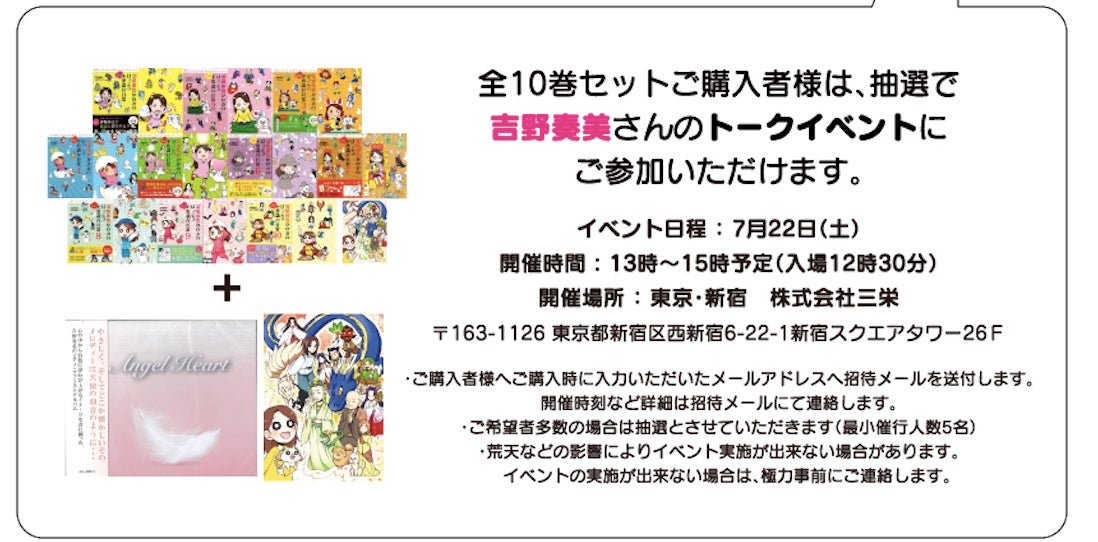 さらに全10巻セットご購入者を対象に抽選で吉野奏美さんとのトークイベントへご参加いただけます。