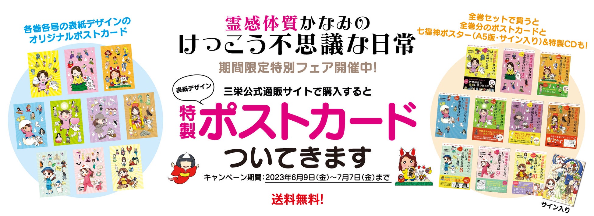 キャンペーン期間中の株式会社三栄の公式通販サイトで「霊感体質かなみのけっこう不思議な日常」を購入すると表紙デザインのオリジナルポストカードが付いてきます。