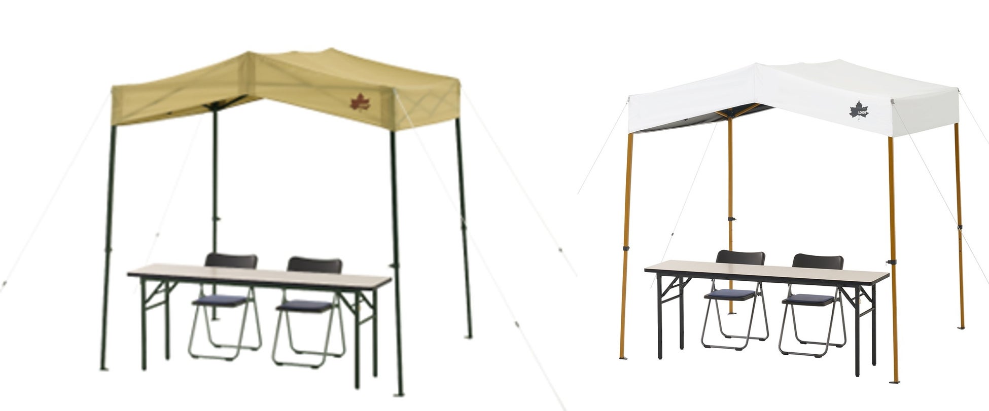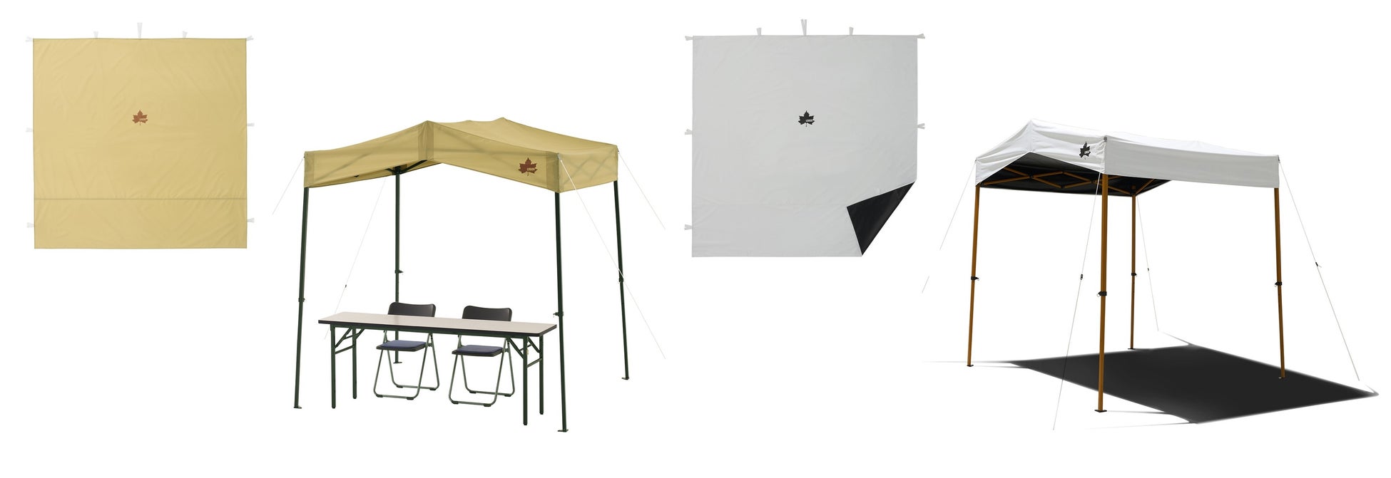 切妻屋根の採用により雨だれを抑え、急な雨や強い日差しにも対応する「切妻 Qセットタープ」2種と、タープに簡単に取り付けや調節ができる「サイドウォール」2種を、キャンプや野外イベントなどのさまざまなアウトドアシーンにてぜひともご活用ください。