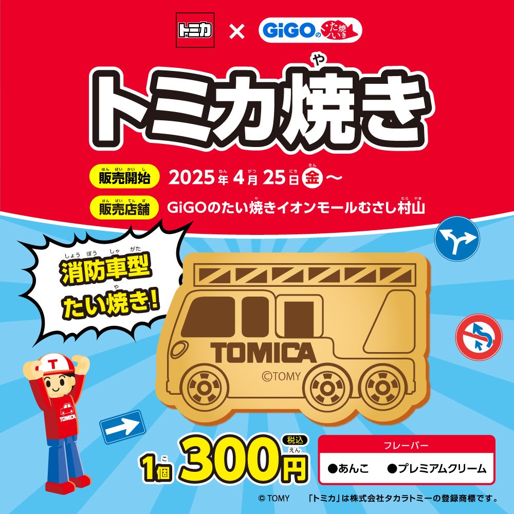 「トミカ」とコラボレーションした「キッズマーケット」の展開に合わせて、「GiGOのたい焼き」では「トミカ焼き」を販売いたします。