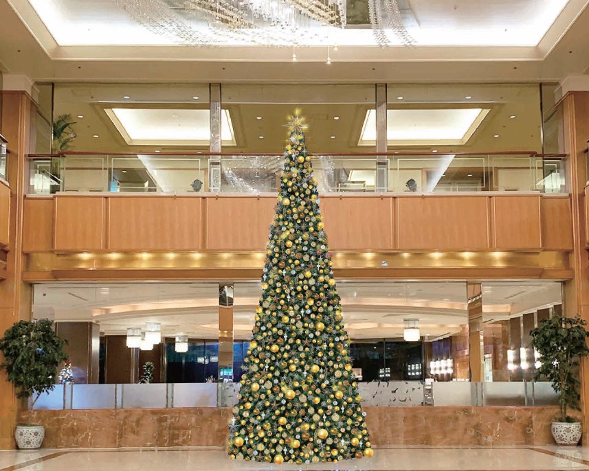 今年6月1日で開業35周年を迎えた当ホテル。今年のクリスマス装飾は、「Bright Christmas」をコンセプトに、ゴールド×シルバーの輝きあふれるカラーリングで皆様をお迎えいたします。1Fロビーには、高さ約7.5mのメインツリーが登場。三層吹き抜けの空間に映える圧倒的な存在感と天の川シャンデリアとの一体感をお楽しみいただけます。また、館内には、ゴールド×シルバーで統一されたツリーやリースなどクリスマスデコレーションを施し、クリスマスムードを高めます。