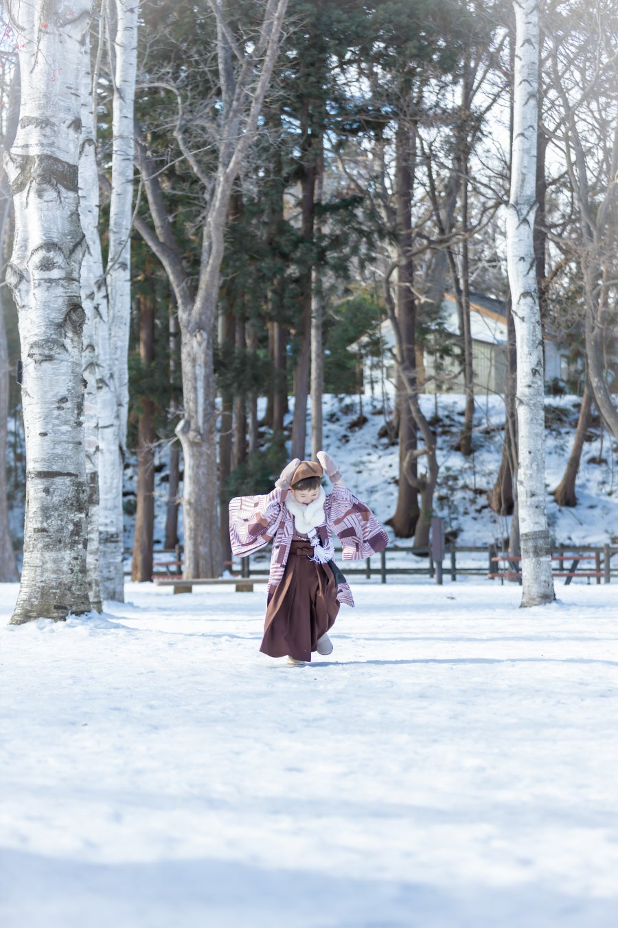 公園ロケーションは、神社での撮影よりもお子様がのびのびと自由に。より自然に遊び感覚で撮影ができるのが魅力の一つ。雪シーズンは特にお子様が楽しめるシーズンの一つで、雪や氷と戯れ、思う存分北海道の冬を満喫した写真を残すことができます。