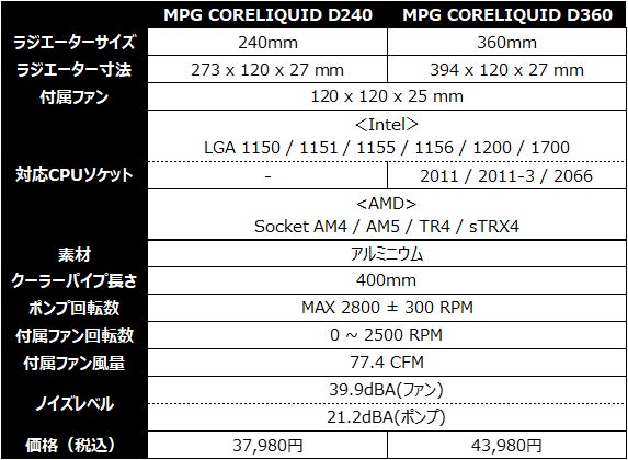 【MPG CORELIQUID D240およびMPG CORELIQUID D360の主な特徴】