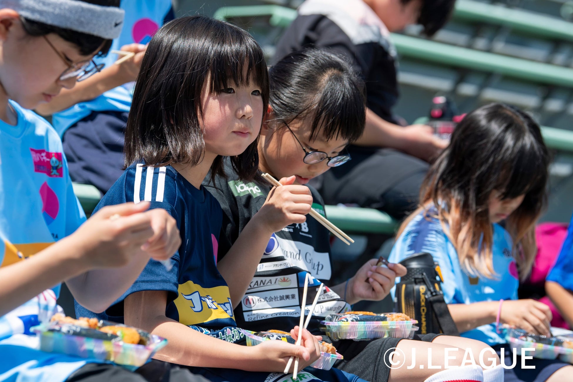 本クリニックは15歳以下の女子を対象とし、サッカーボールを初めて蹴るお子さまからサッカー経験者まで誰でも参加できます。なでしこリーグの選手たちと一緒にドリブルやパス、シュートなどの基本的なトレーニングからミニゲームまでを楽しむとともに、食に関する話やアドバイスを行う食育を実施し、スポーツと食の大切さを学ぶ教室です。