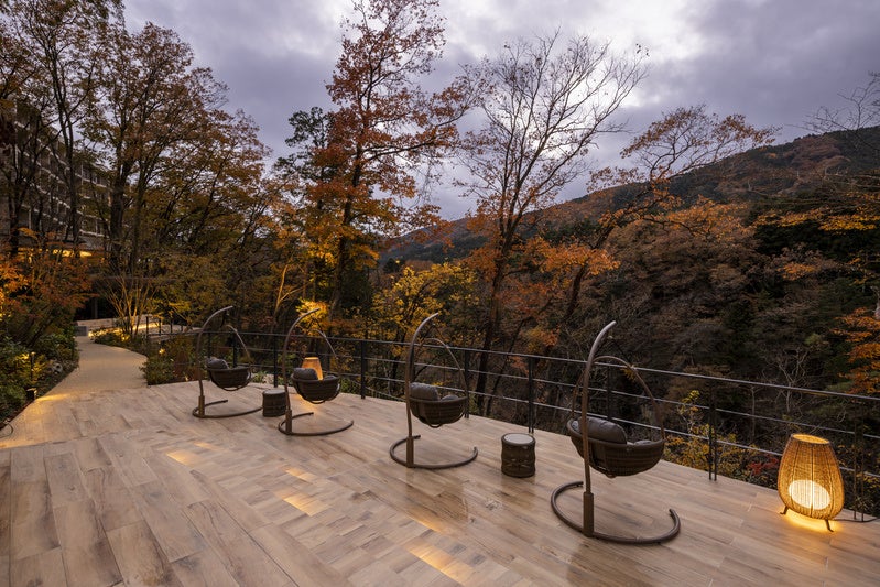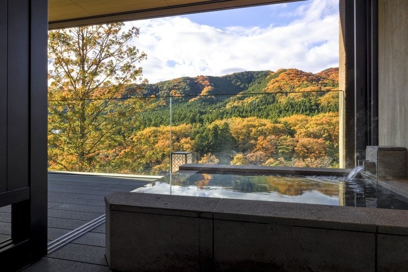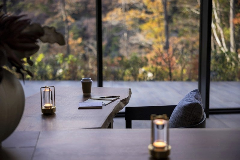 すべての客室からは鬼怒川渓谷の壮大な自然が眼下に広がり、川のせせらぎや爽やかな渓谷の風、四季折々に表情を変える景観を肌で感じていただけます。「Restaurant炅(けい)」では、北関東や東北の旬の食材にこだわり、薪や炭、藁などの火で調理することで、香ばしさと深い味わいを引き出しています。発酵文化が根付くこの土地ならでは食文化を継承し、滋養と滋味をコンセプトとした自家製の発酵食品やスイーツなども開発し、食の豊かさを体現した料理をご提供しています。また、館内や施設で使用する電力はすべて再生可能エネルギーを活用し、サステナビリティを重視した運営を実践しています。