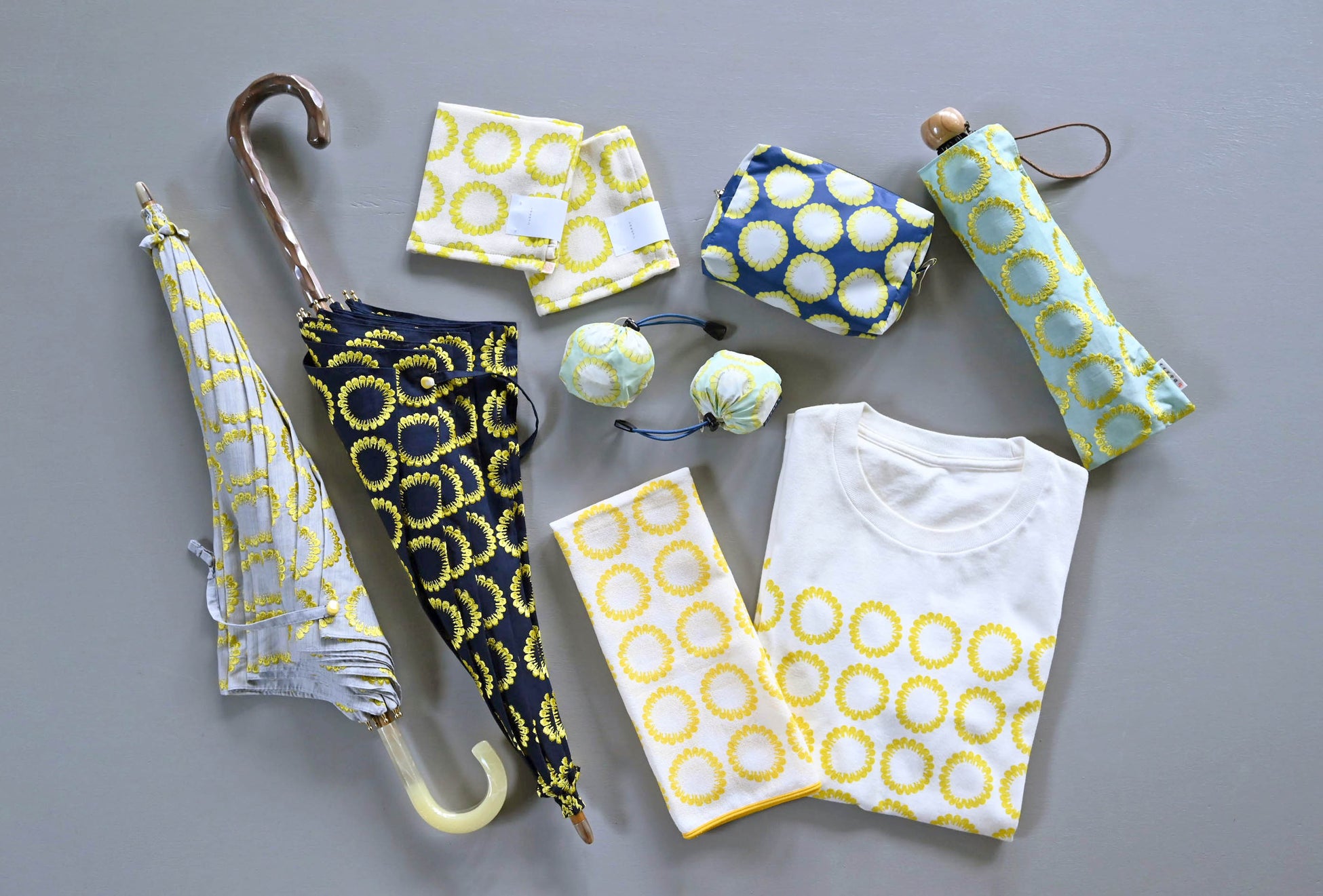 雨傘・日傘・晴雨兼用傘、バッグやリュック、ケータリングバッグ、Tシャツ、手ぬぐい、ポストカードなど