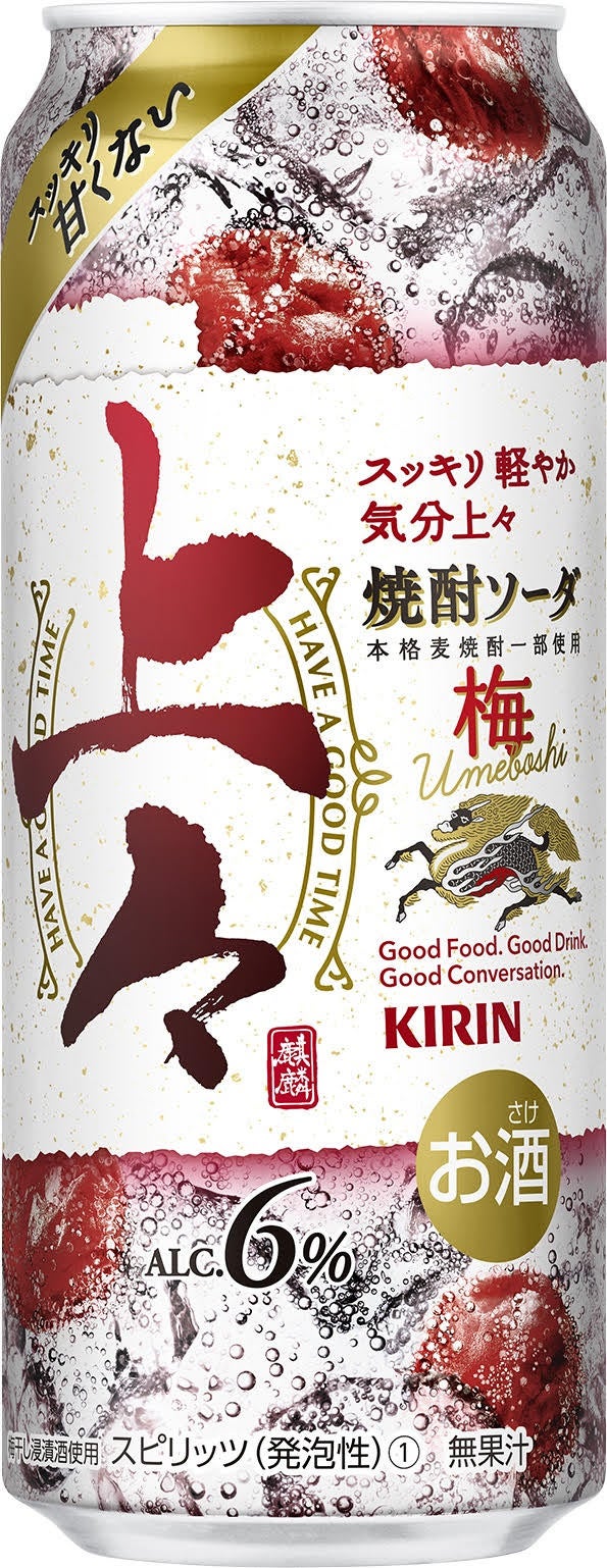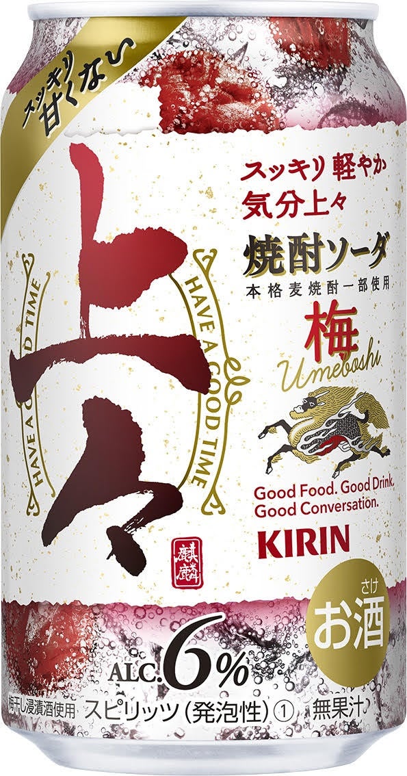 食事にぴったりな、クセがなくすっきり爽やかな焼酎ソーダ「キリン 上々」ブランドから「キリン 上々 焼酎ソーダ 梅」新発売