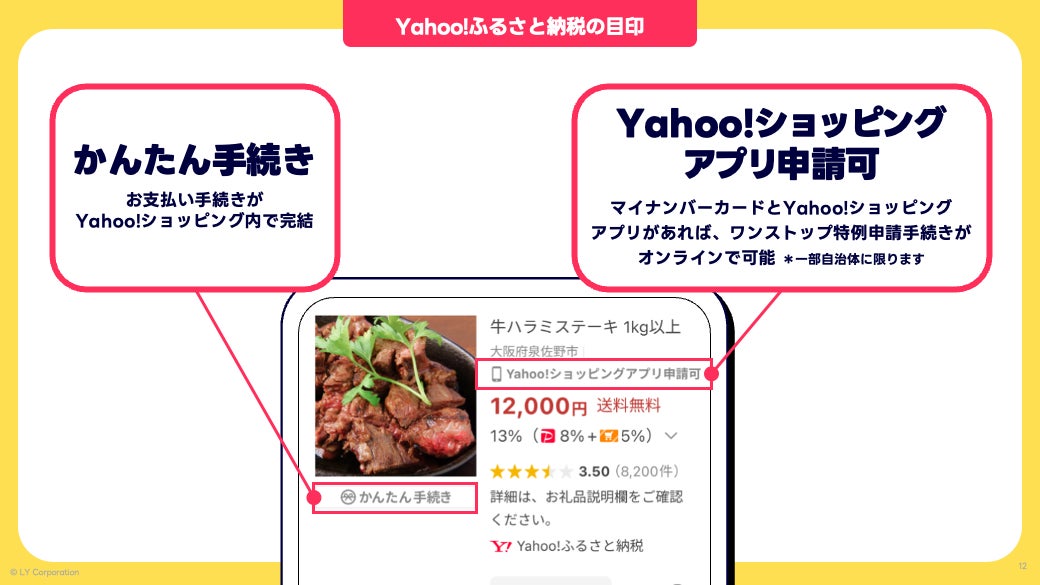LINEヤフー株式会社(以下、LINEヤフー)は、より多くのユーザーにふるさと納税を行ってもらうことで、ふるさと納税を通じた地域貢献の活性化を目的として、「Yahoo!ふるさと納税」をリリースしました。お礼品の申込みから税金の控除申請までの手続きすべてを「Yahoo!ショッピング」内で完結でき、ふるさと納税がはじめての方でも簡単に利用できます。
