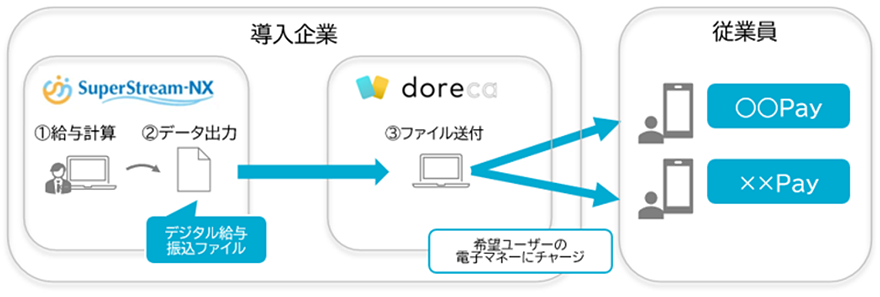 財務会計/人事給与システム「SuperStream-NX」と価値交換基盤「doreca」の連携により、給与デジタルマネー支払いに対応