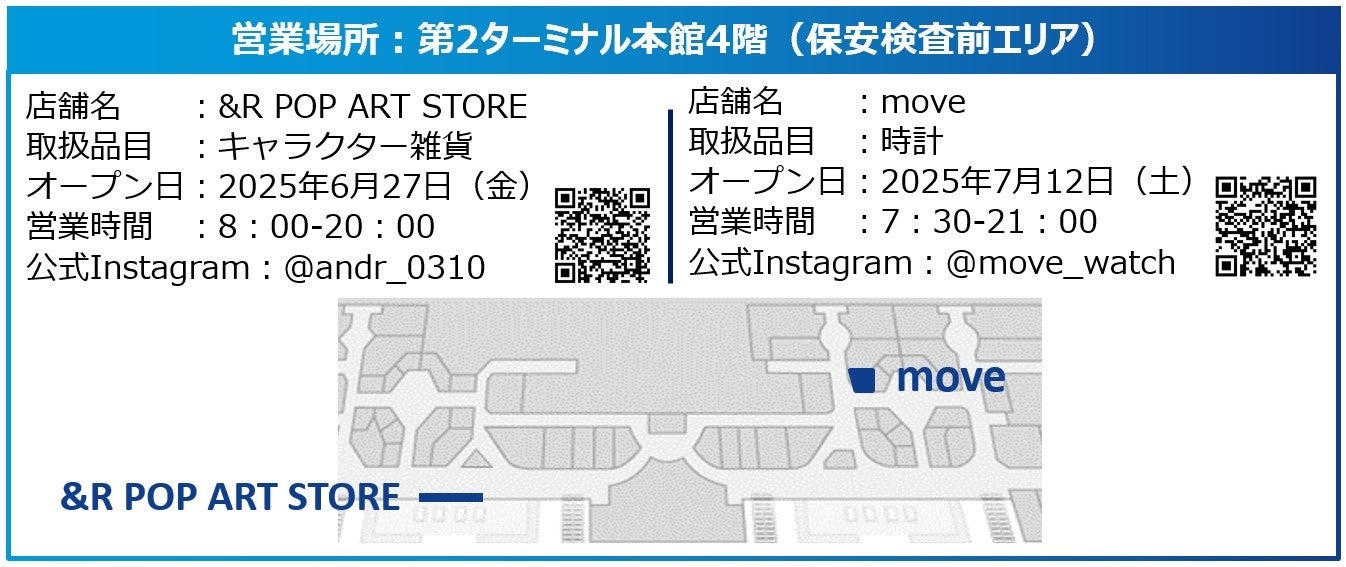 空港初出店!第2ターミナルに催事店舗オープン!!ポップなアートキャラクターストア「&R POP ART STORE」日本の時計が集まるウォッチセレクトストア 「move」