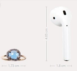 ルーラーやほかのジュエリー、身近なものでのサイズの比較が可能。