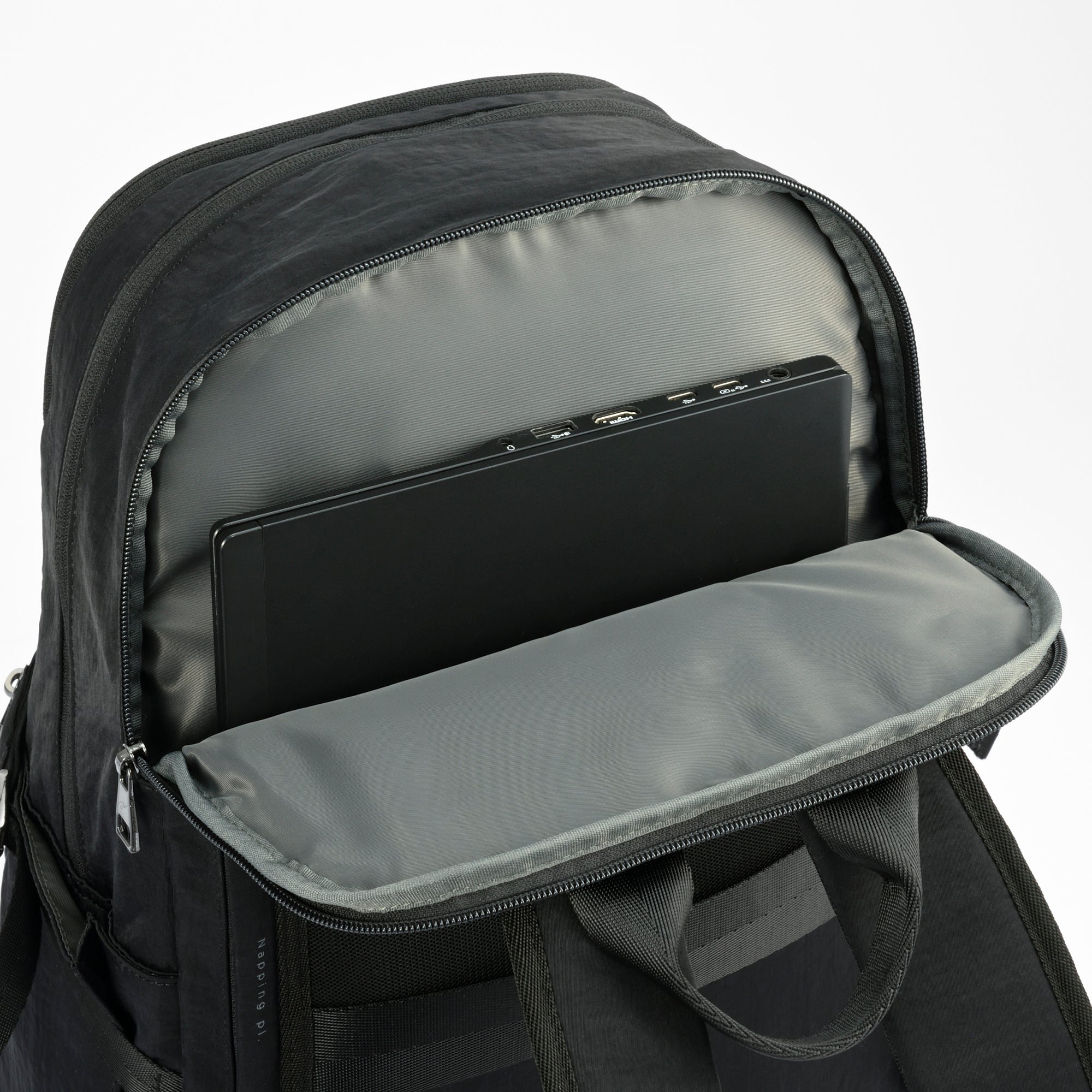 アジャスター付きで容量調節ができる「フロントポケット」をはじめ、上部に配した、小物の収納に便利な「フロントポケット」、ペットボトルを収納できる「サイドポケット」を配置。軽量設計かつ14.0インチPCサイズに対応した「PCポケット」も備えます。