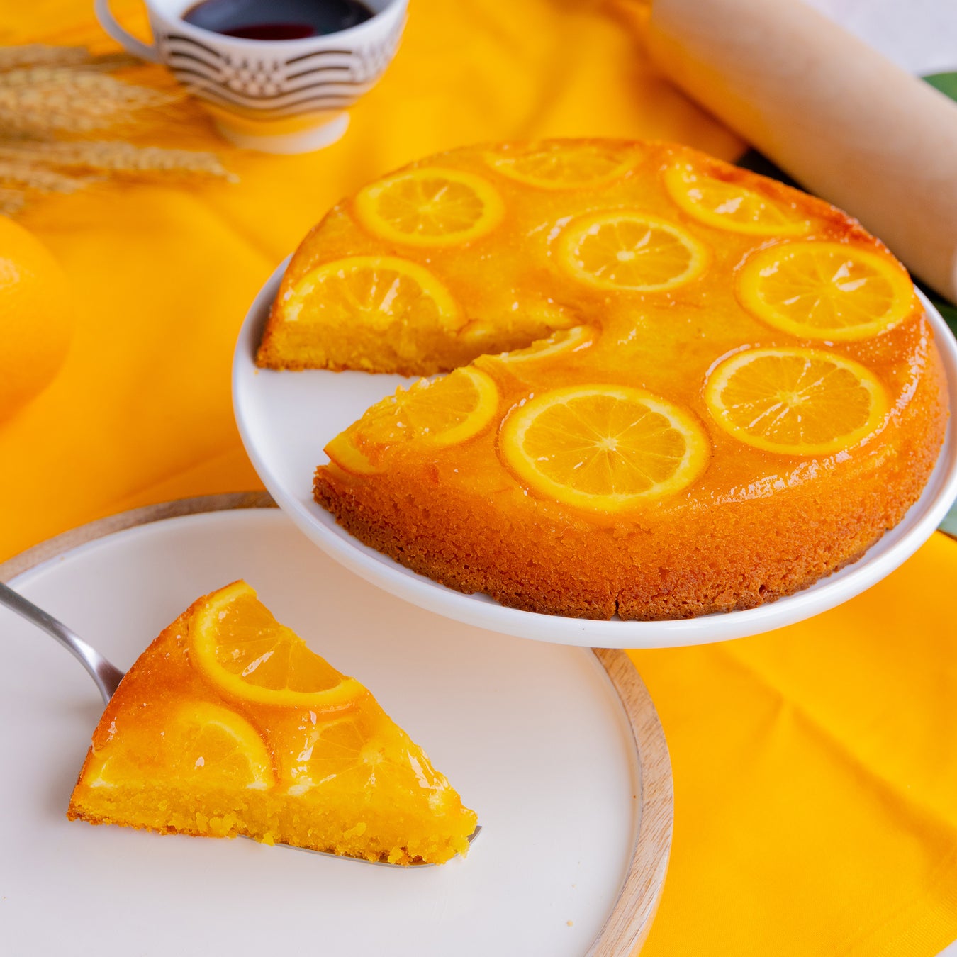 オレンジソースを混ぜ込んだガトー・ナンテに、オレンジスライスをのせて爽やかな味わいに仕上げました。