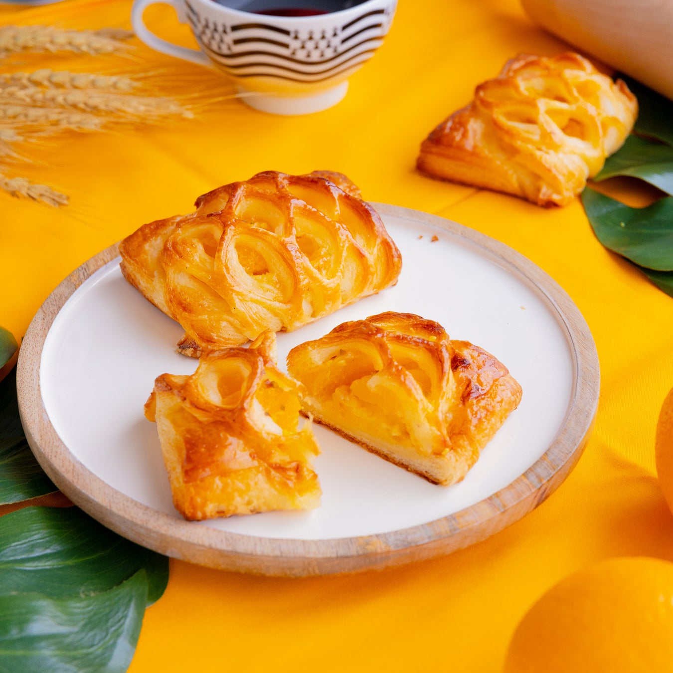 デニッシュにオレンジ入りのカスタードと、みずみずしいオレンジを包みました。