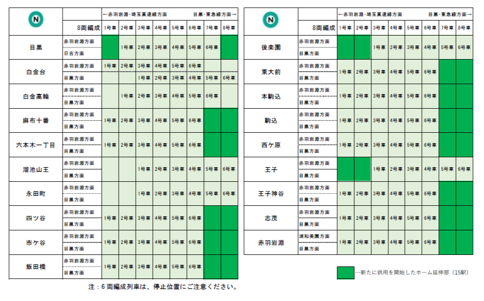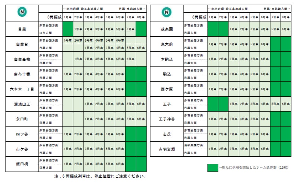 この度、当社および相互直通運転を行っている各社の工事が完了したことから、現在はすべて6両編成で運行している南北線で2022年4月上旬より、8両編成列車1編成(東急電鉄所属車両)の運行を開始いたします。今後は、順次8両編成列車の運行数を増やしてまいります。