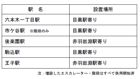 4 ホーム延伸部にエスカレーター・階段を増設した駅(5駅)