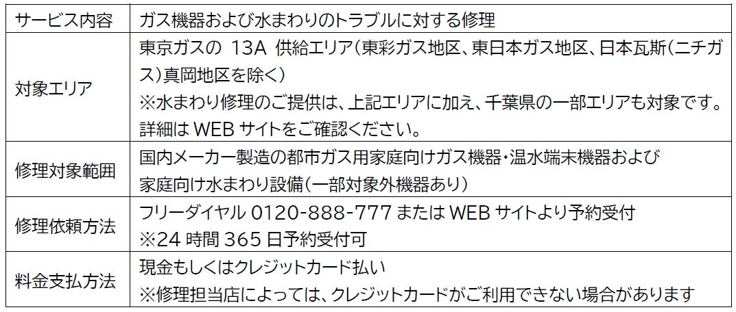 東京ガスのガス機器・水まわり修理サービス