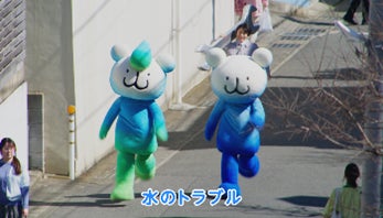 「修理の東京ガス 水パッチョ仲裁」篇では、水まわりのトラブルをめぐって公園でもめている「ジャグチくん」と「トイレくん」の間に「水パッチョ」が入り、仲直りさせる姿をほのぼのと描いています。