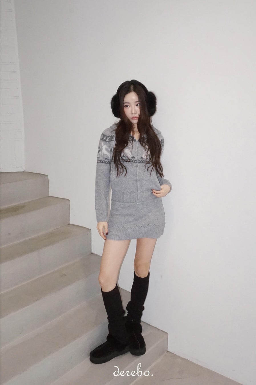 綿混で蒸れにくく肌触りの良いレッグウォーマーは、冬のミニコーデの強い味方。イヤーマフも黒で揃えて、グレーのセットアップに映えるY2K風コーデに。