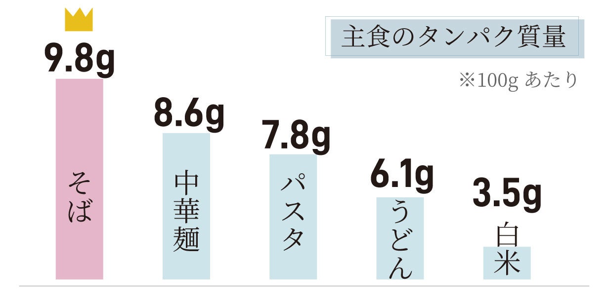 ボディメイクのプロが、1年以上試作を繰り返してついに完成しました。プロテイン(パウダー)に頼らずに蕎麦の原料そのもので、タンパク質が多く摂取できる栄養食品です。