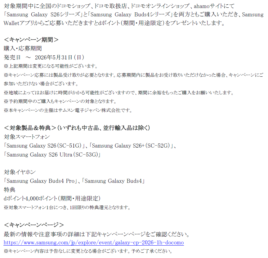 ■Samsung Galaxy S26シリーズ発売記念 購入キャンペーン