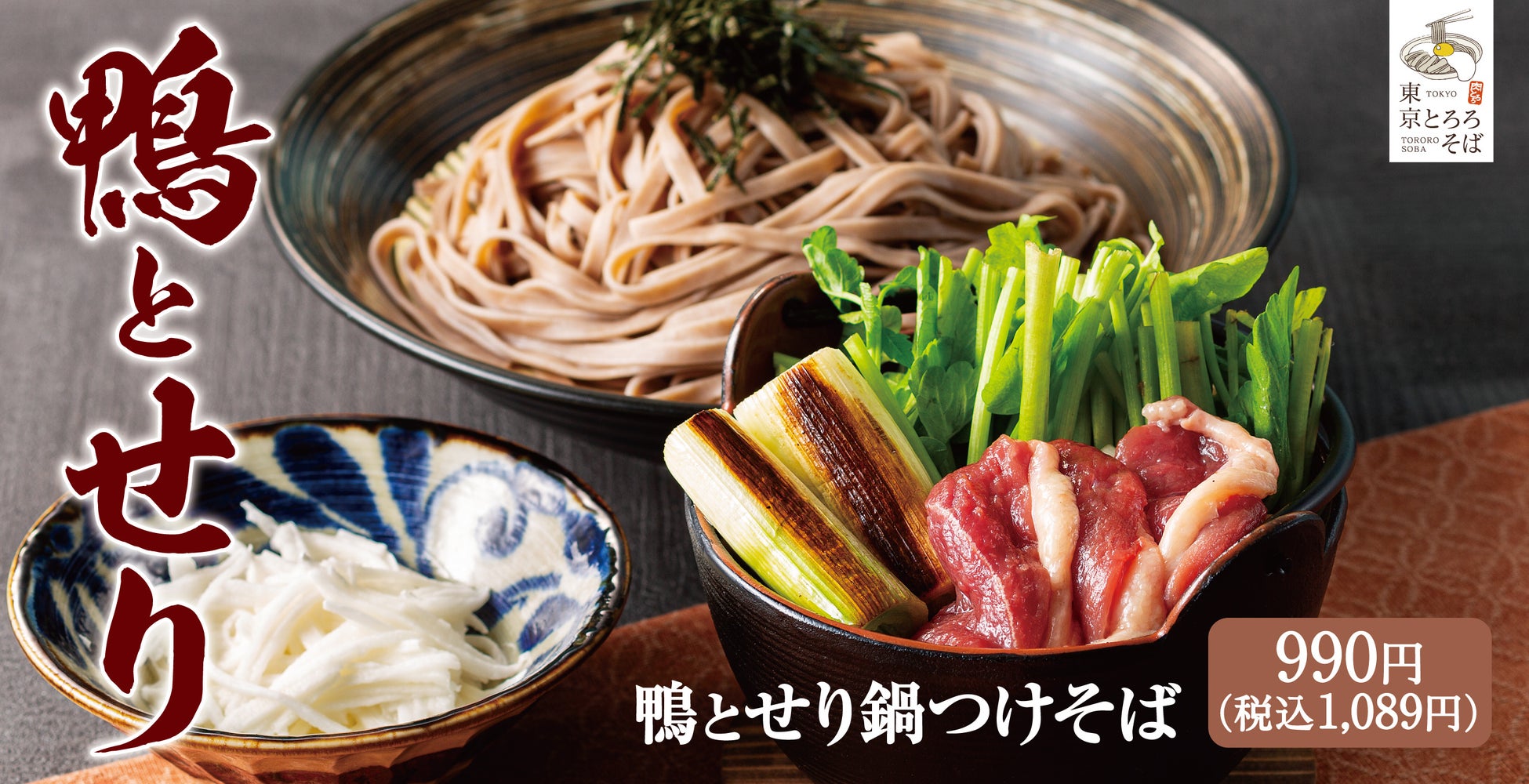 【冬を頬張る】信州平打ちそばを鉄鍋で「鴨とせり鍋つけそば」東京とろろそばに新登場!