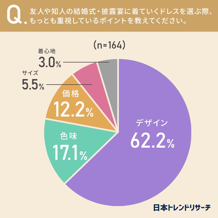 ■結婚式のお呼ばれドレス、重視しているポイントは「デザイン」が62.2%で最多