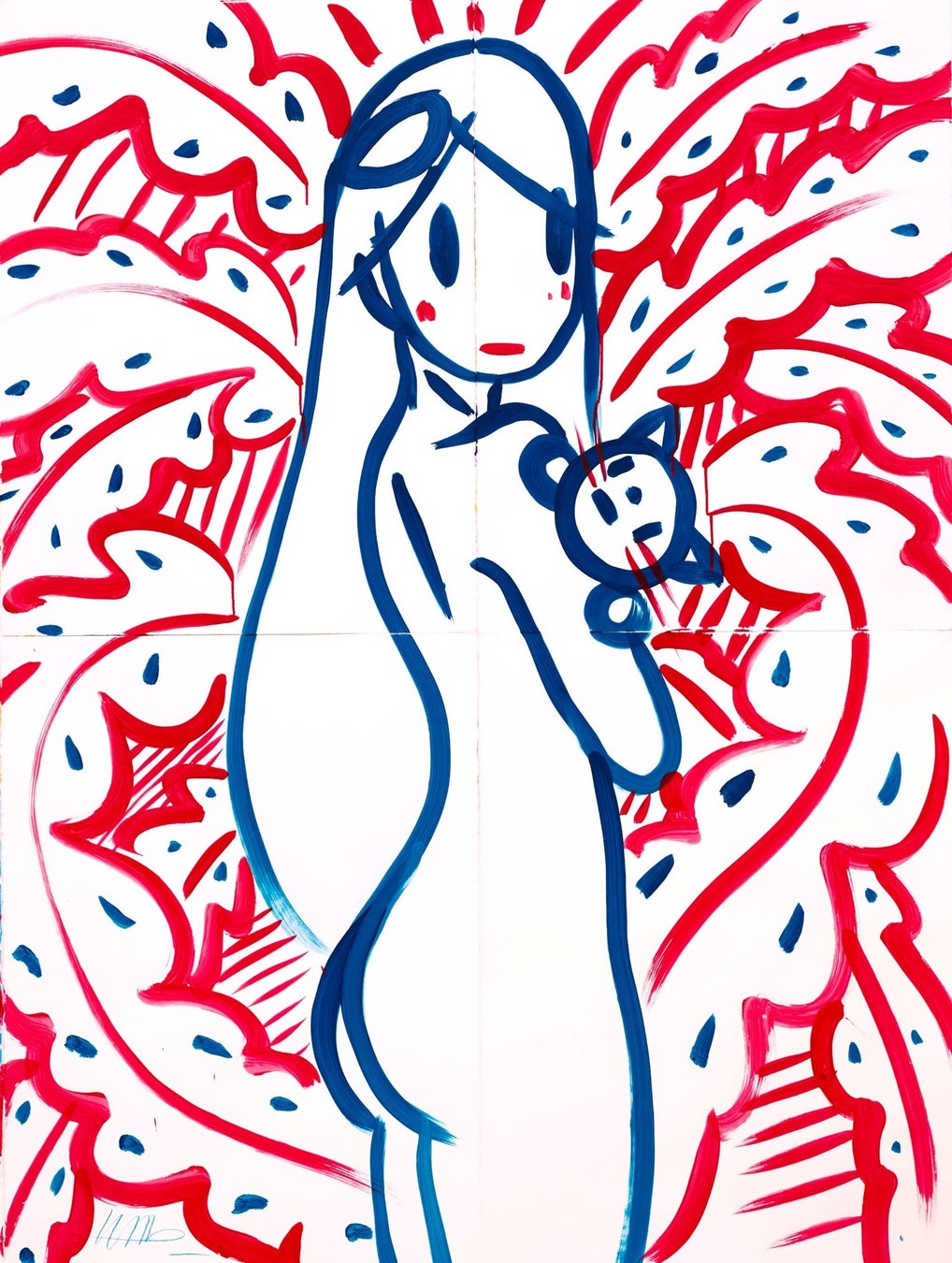天野タケルは、ポップアートとクラシックを融合した“NEWART”という独⾃の技法で作品制作を続けるアーティストです。シンプルな筆致と鮮やかな色使いが特徴的で、パリ、ロンドン、ニューヨーク、⾹港など海外でも多くのファンから支持されています。
