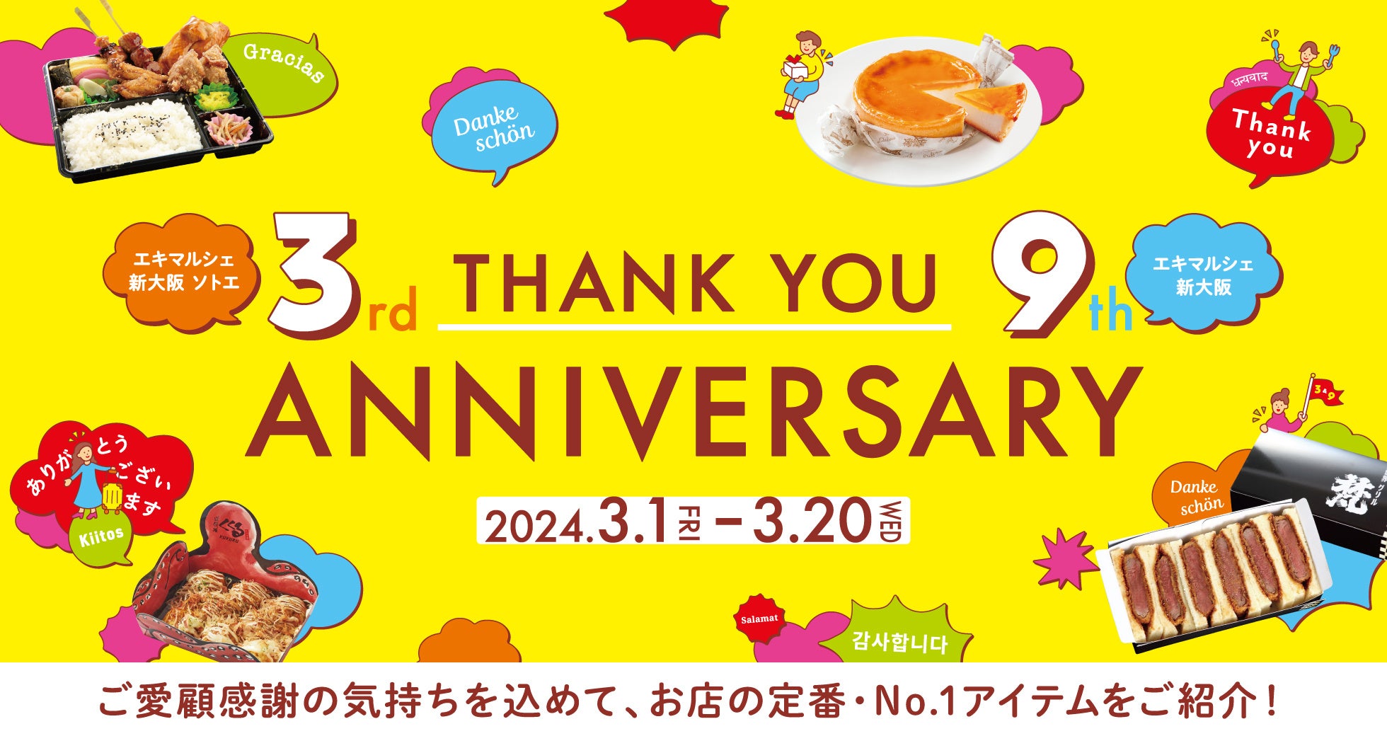 【(株)ジェイアール西日本デイリーサービスネット】エキマルシェ新大阪9周年、エキマルシェ新大阪Sotoeが3周年!