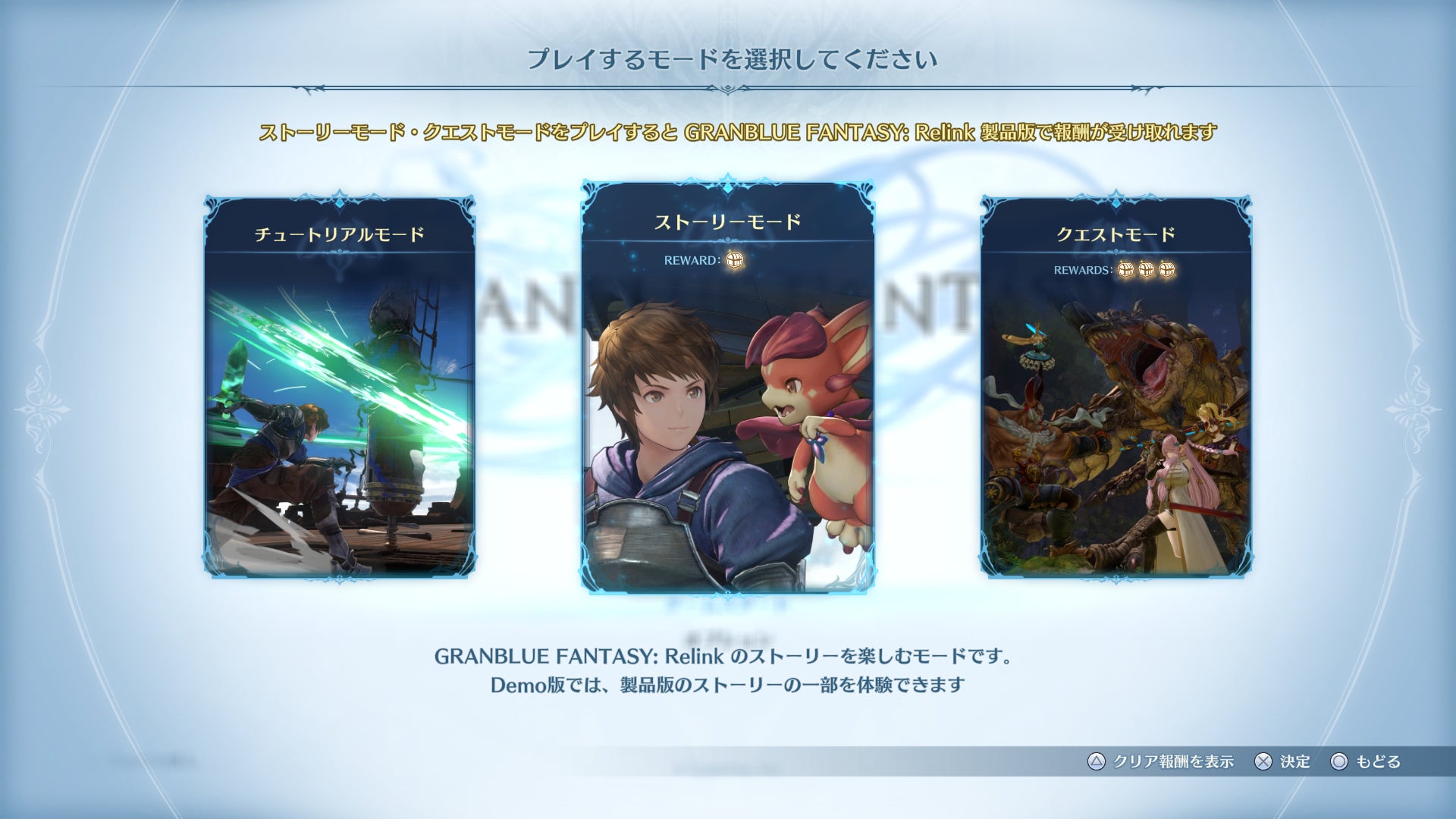 『GRANBLUE FANTASY: Relink Demo』では、以下3つのコンテンツをプレイできます。
