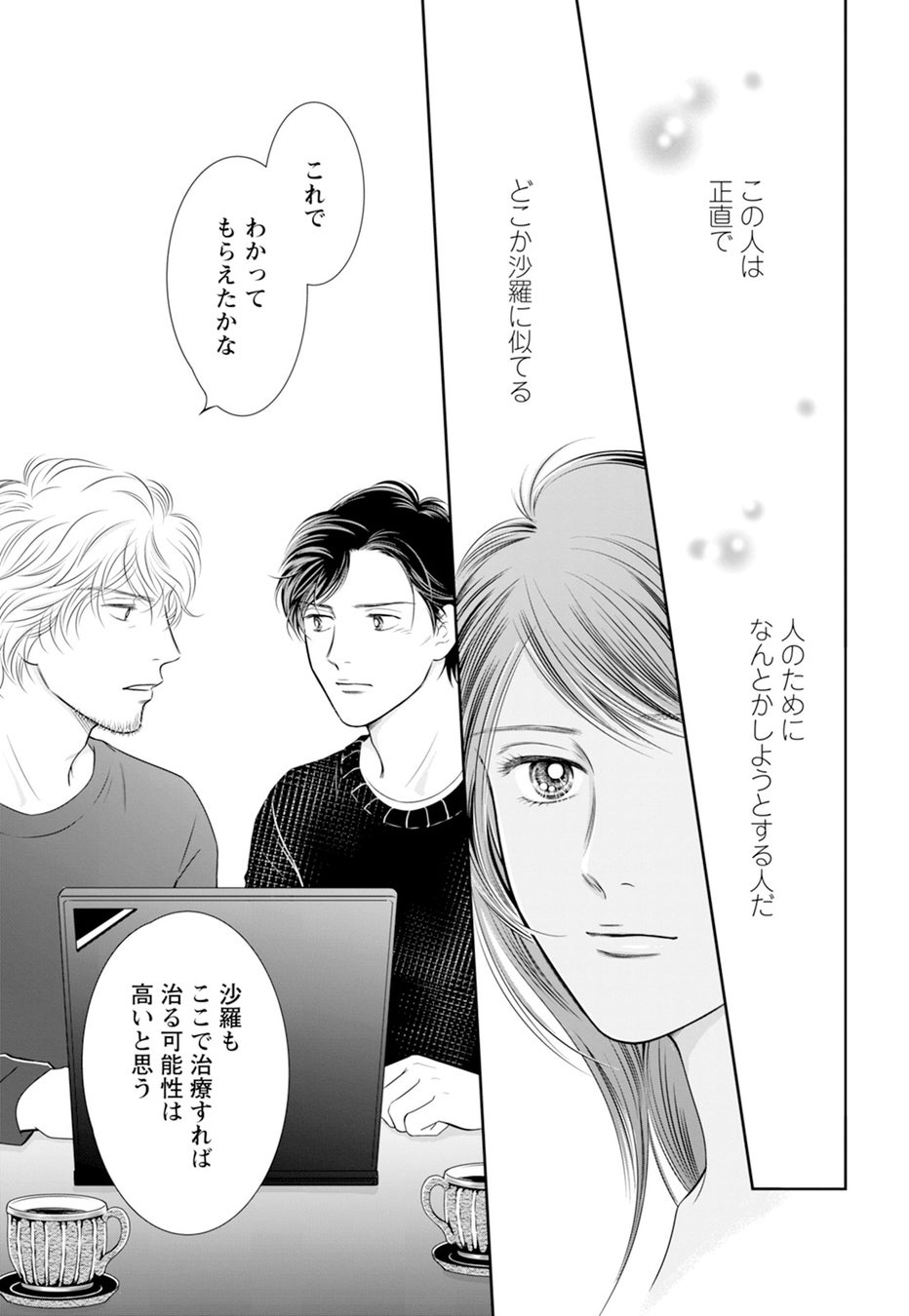 今巻では沙羅の病気――脳の萎縮を春翔から聞き出した薫が、海外であれば治療の術があることを大樹に説くのだが、薫に対する沙羅の想いを知る大樹は、薫に沙羅を託す以外の選択肢がないことをわかっていながらも、その決心ができずにいた。はたして大樹の出した答えは、そして沙羅の運命は――!?