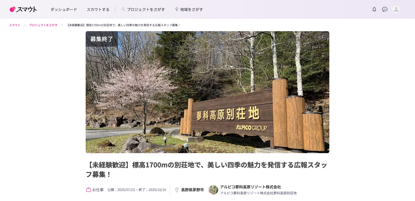 別荘管理の社員募集の情報発信を行いました。(※実際の記事:【未経験歓迎】標高1700mの別荘地で、美しい四季の魅力を発信する広報スタッフ募集!)