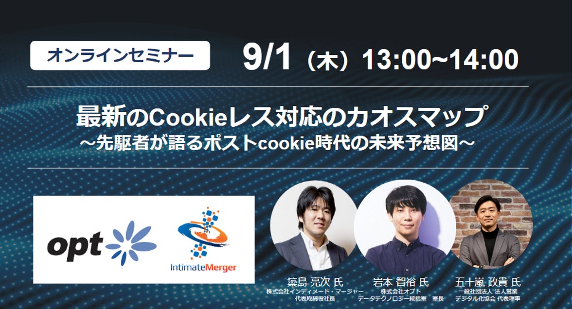 オプト、インティメート・マージャーと共催でオンラインセミナー「最新のCookieレス対応のカオスマップ」を開催