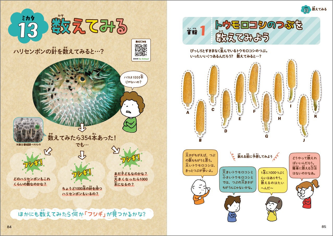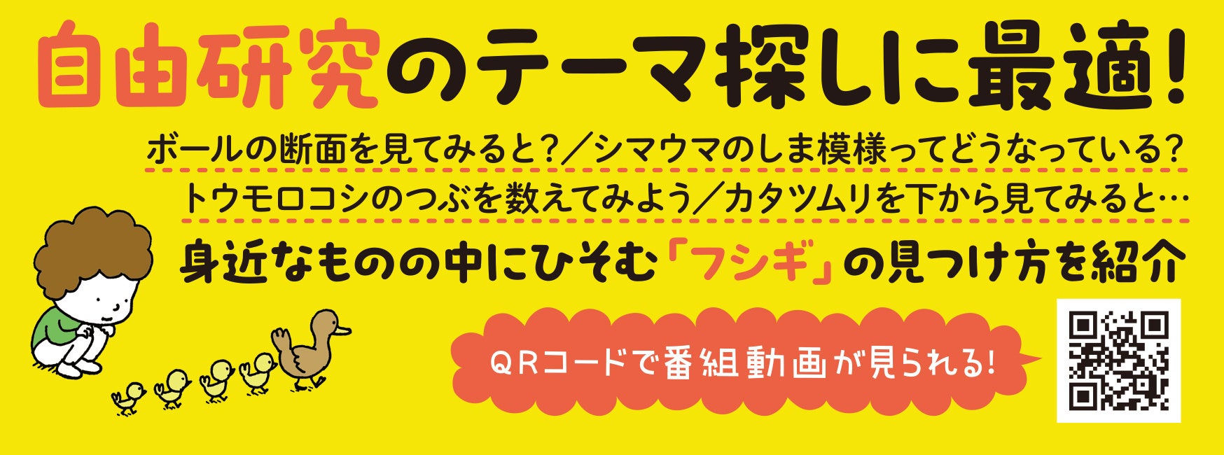 「数えてみる」「比べてみる」「大きくしてみる」など、毎回ひとつの「ミカタ」を取り上げ、その「ミカタ」を通して自分なりの「フシギ」を見つけて探っていきます。ボールの断面を見てみると? トウモロコシの粒を数えてみると? カタツムリを下から見てみると? ほんの少し見方を変えるだけで、たくさんのフシギが生まれ、もっと調べてみたくなるという、自由研究のテーマ探しにもぴったりの一冊です。番組の動画を見られる二次元バーコードも随所に掲載!