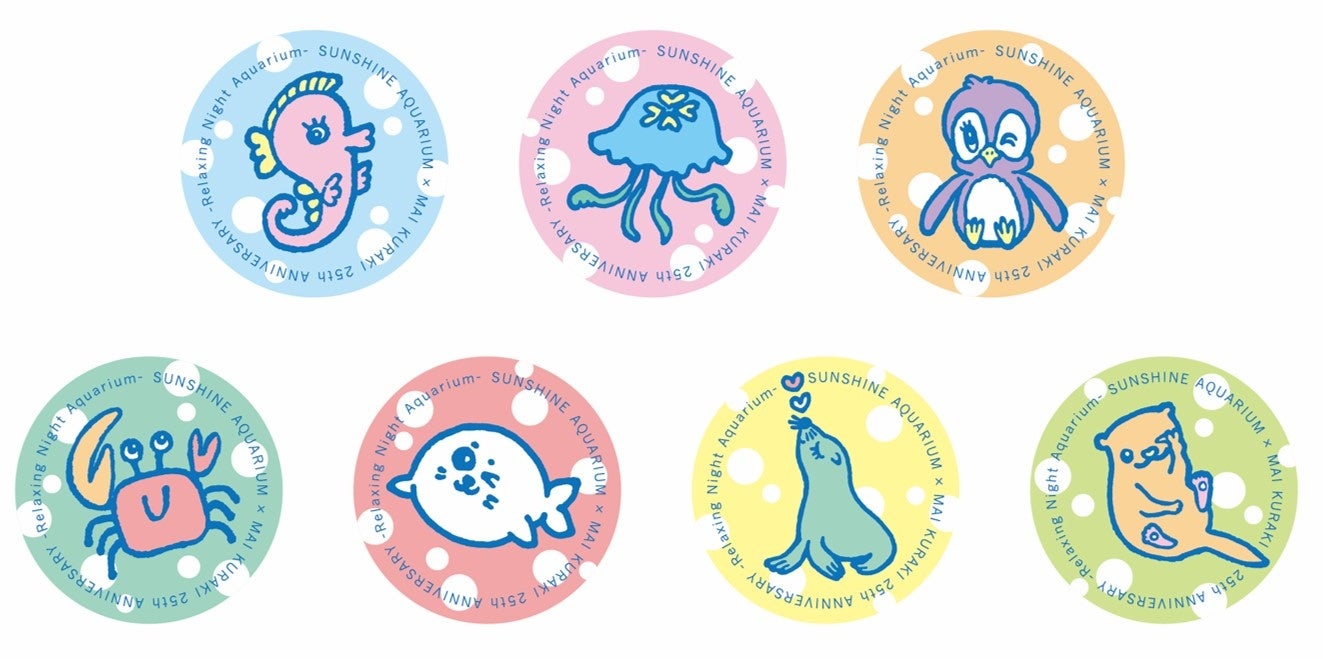 コラボグッズ1点以上を含む2,000円購入ごとに倉木麻衣描き下ろし「アシカ」「アザラシ」「カワウソ」「シオマネキ」「タツノオトシゴ」のイラストステッカーをランダムで1枚プレゼントします。※配布は先着。数に限りがあります
