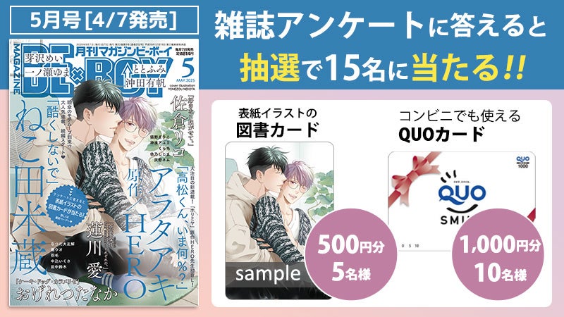 【本日発売】大人気シリーズ待望の続編連載! 「酷くしないで」(著:ねこ田米蔵)が表紙のマガジンビーボーイ5月号は、4月7日発売!