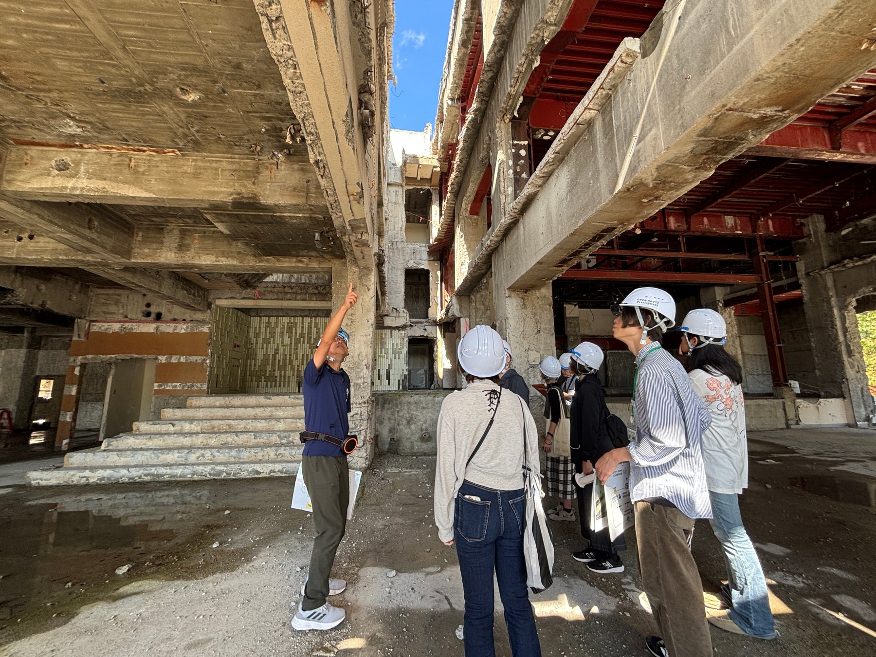 「旧一葉亭」は水上温泉街の中心部にあり1948年に創業し、2019年に閉業した大型廃墟ホテルです。本プロジェクトでは、従来の「スクラップ&ビルド」ではなく、「減築&再生」という新しいアプローチで事業が進められ、2024年12月に減築工事が完了し、現在は躯体等が露わになった状態となっています。今年の「ミナカミ・ミライ・マルシェ」では、通常は立ち入りを禁止されている「旧一葉亭」が初めて一般公開されました。ツアーは満員御礼となり、本プロジェクトの最新状況を直接感じていただく貴重な機会となりました。