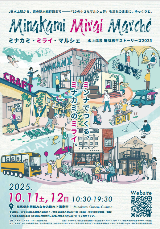 株式会社オープンハウスグループ(本社 東京都千代田区、代表取締役社長 福岡 良介、以下「当社」)は、群馬県みなかみ町、群⾺銀⾏、東京⼤学大学院工学系研究科(以下「東京大学」)と締結した「産官学⾦包括連携協定」に基づき進めております「⽔上温泉街再⽣プロジェクト」(以下「本プロジェクト」)の⼀環として、2025年10月11日(土)・12日(日)に、JR上越線水上駅から、道の駅水紀行館までの温泉街全体を巡る「ミナカミ・ミライ・マルシェ−水上温泉 廃墟再生ストーリーズ2025−」を共催いたしました。