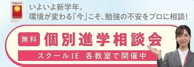 総合教育サービス企業の株式会社やる気スイッチグループ(東京・中央区、代表取締役社長:高橋 直司)は運営する個別指導塾「スクールIE®」にて、新学年を迎え、受験を考える小学生から高校生を対象に、2026年春の個別進学相談会を全国の教室で開始しました。さらに2026年4月30日(木)までにご入会の方が対象で入会金が0円となります。