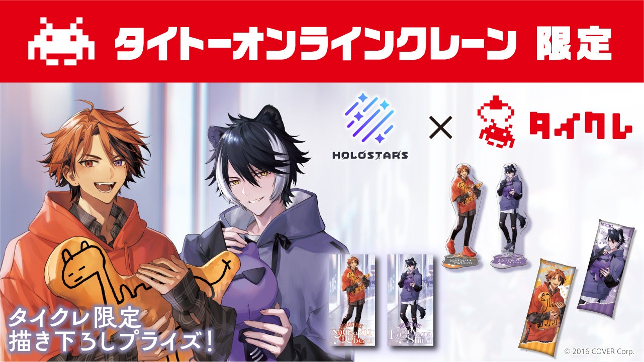 カバー株式会社(本社:東京都千代田区、代表取締役社長:谷郷元昭)が運営するVTuber事務所「ホロライブプロダクション」傘下の男性VTuberグループ「ホロスターズ」において、株式会社タイトー(本社:東京都新宿区、代表取締役社長:岩木克彦)が運営するオンラインクレーンゲーム『タイトーオンラインクレーン』との待望のコラボ企画として「夕刻ロベル」「影山シエン」を起用した限定プライズゲーム用景品が2023年1月21日(土)20時より登場することをお知らせいたします。