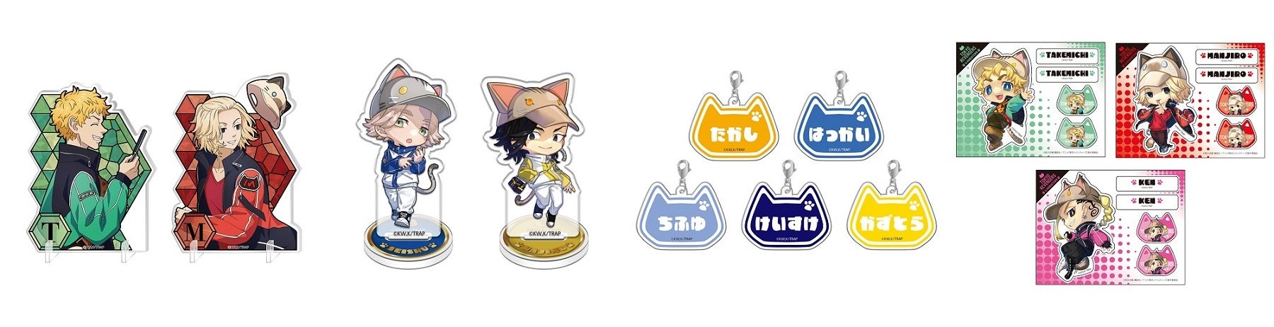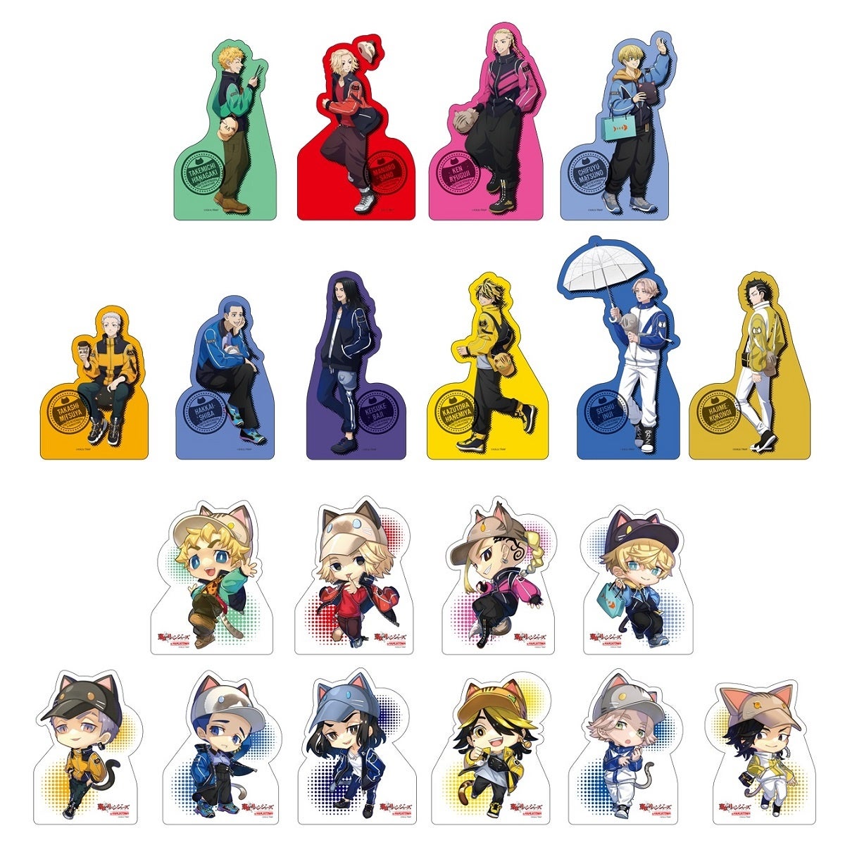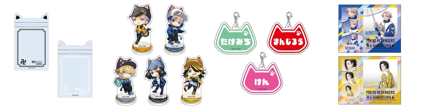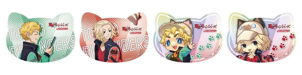猫がシンボルキャラクターであるナンジャタウンにちなみ、それぞれ異なる猫モチーフのキャップとオリジナル衣装を身につけたタケミチたちが描きおろし等身イラストとオリジナルミニキャライラストで登場します。キャラクターは第1弾でも登場した花垣武道(はながきたけみち)、佐野万次郎(さのまんじろう)、龍宮寺 堅(りゅうぐうじ けん)、場地圭介(ばじけいすけ)、松野千冬(まつのちふゆ)に加え、両イラスト共に三ツ谷 隆(みつや たかし)、柴 八戒(しば はっかい)、羽宮一虎(はねみやかずとら)、乾青宗(いぬい せいしゅう)、九井 一(ここのい はじめ)を追加した全10名をラインアップしています。