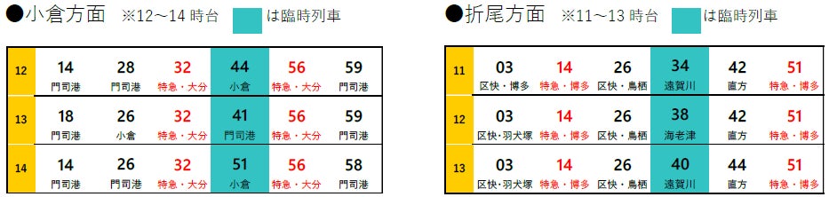 ※詳細はJR 九州ホームページ「駅別時刻表」をご参照ください。 「駅別時刻表」はコチラ