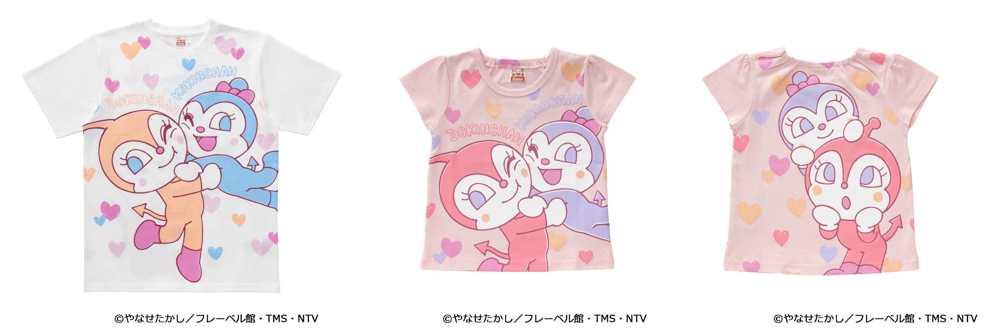 ペアで着るともっと楽しい!アンパンマンとコキンちゃんがめくれるギミック付きTシャツや、ドキンちゃんとコキンちゃんがむぎゅっとハグしたTシャツなどが登場!