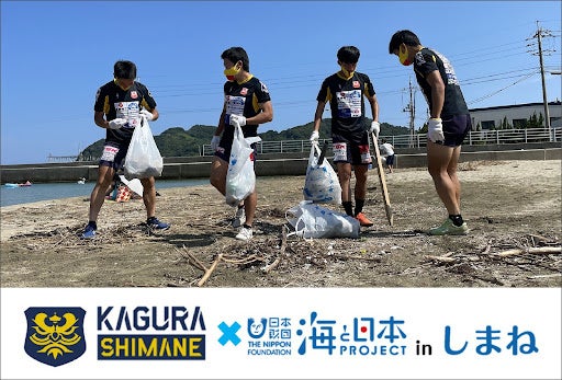 また、イベントに先立ち、7月24日(日)にはJFL公式戦第17節FC神楽しまねVSクリアソン新宿戦にて、海と日本プロジェクトinしまねによるサポーティングマッチを開催しました。試合会場では、サポーターと一緒に試合会場周辺のごみ拾いを実施したり、海と日本プロジェクトinしまねの関連グッズが当たる抽選会などを実施しました。