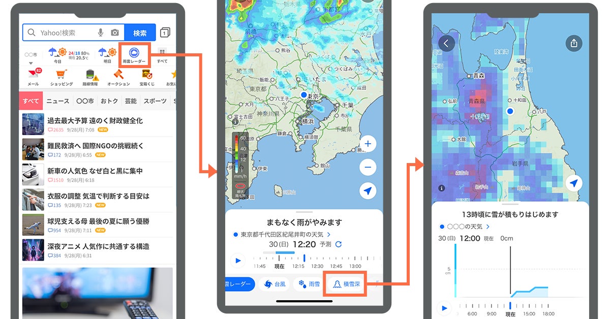 【Yahoo! JAPANアプリ】雪の積もり具合がわかる新機能「積雪深モード」を提供開始。24時間前から6時間後までの積雪の深さを一目で確認可能