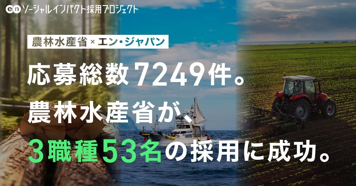 農林水産省、7249名の応募から3職種53名をエン・ジャパンで採用!