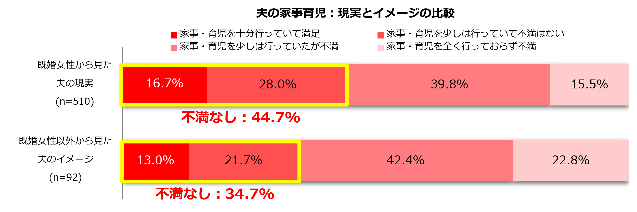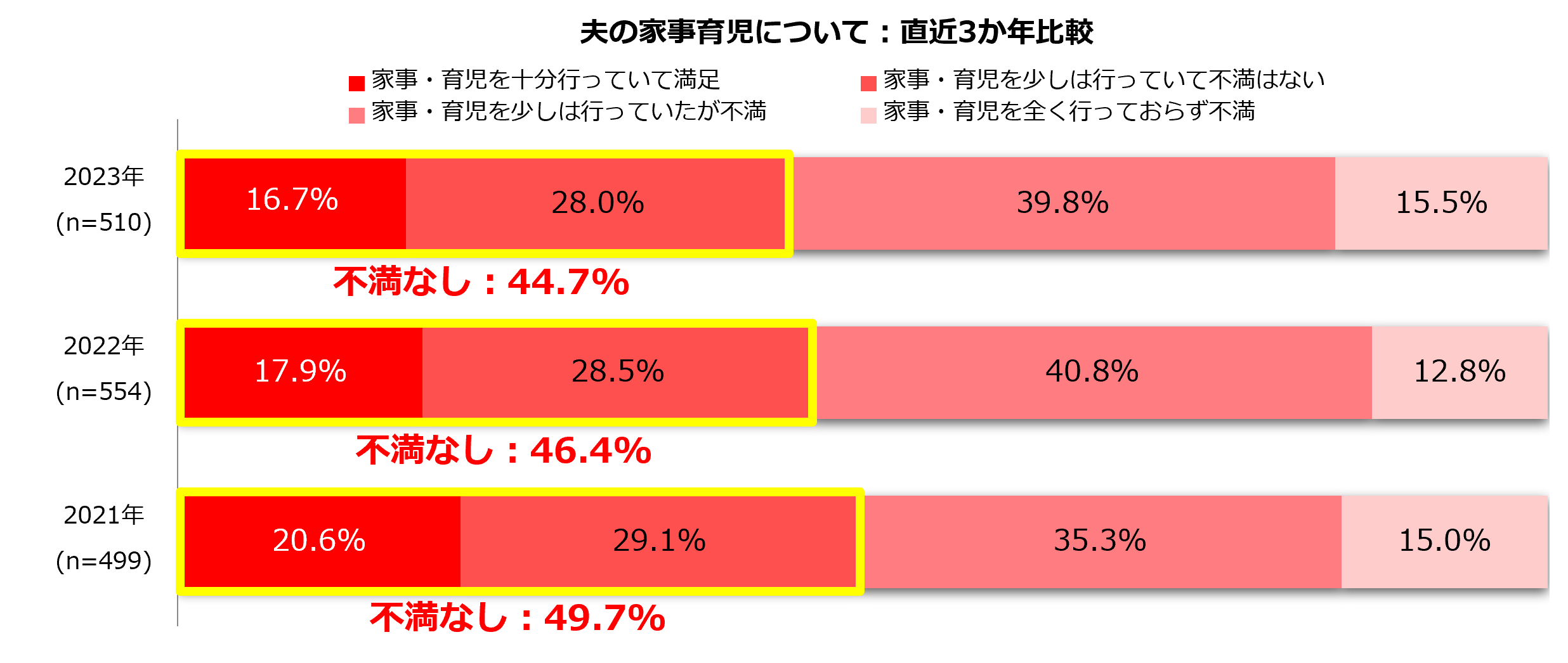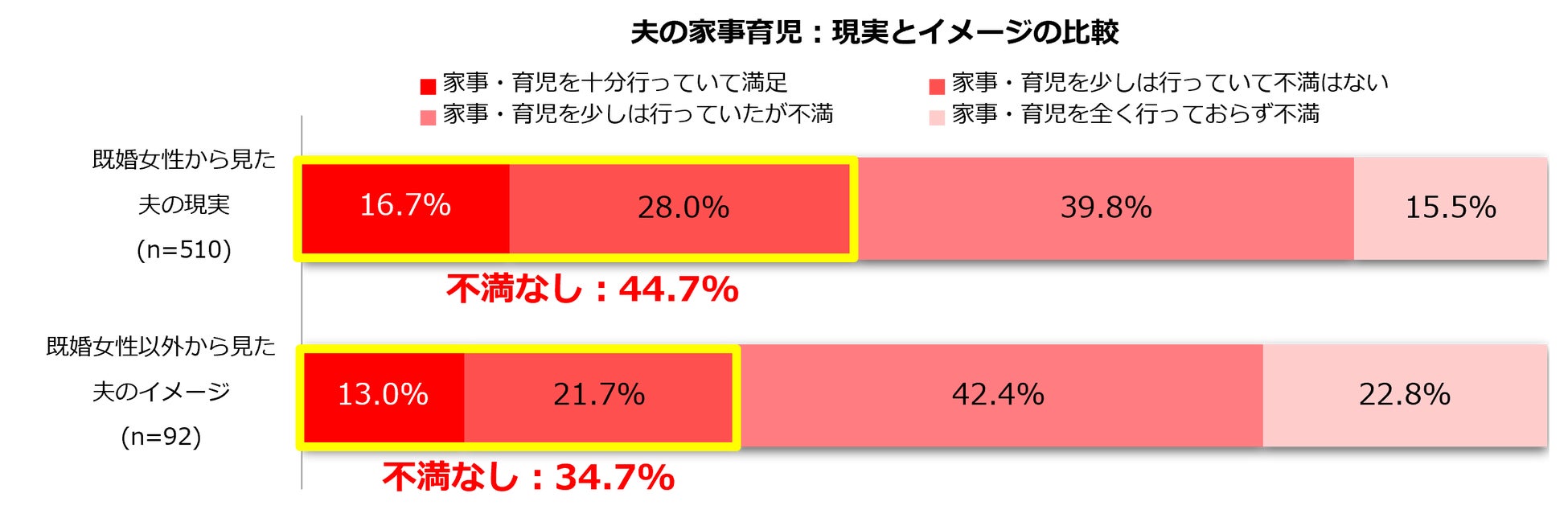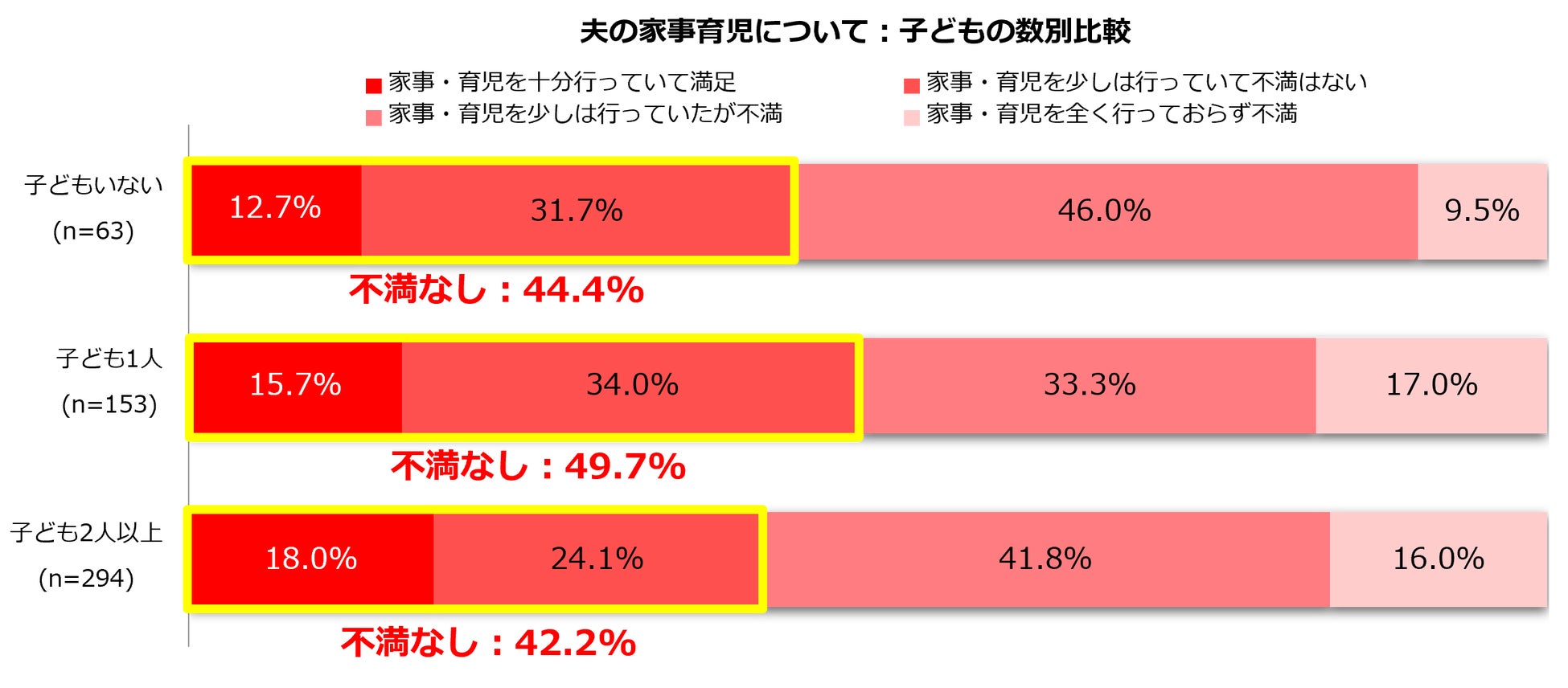 1.夫の家事・育児に「満足」16.7%、「不満」55.3%