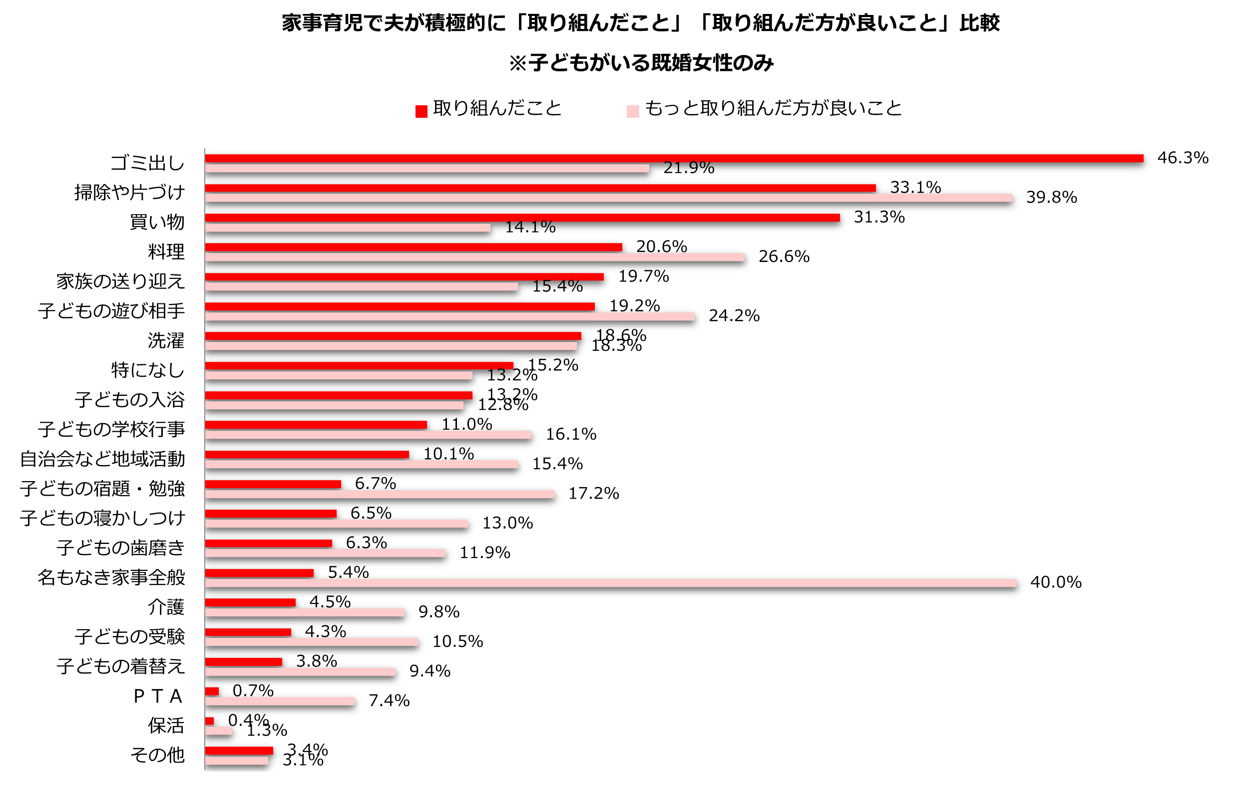夫が積極的に取り組んでいたのは?「ゴミ出し」が最多/取り組み不足度の最多は「名もなき家事」 ~しゅふJOB総研~