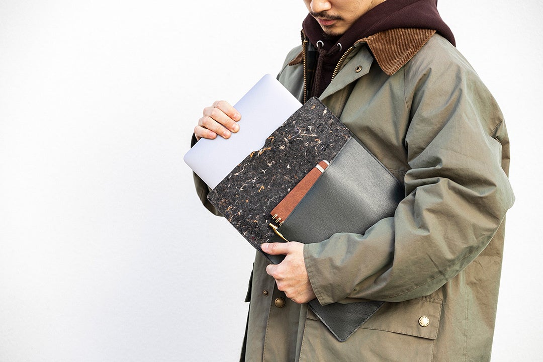 アーバンリサーチの廃棄衣料アップサイクルブランド「commpost(コンポスト)」より、新たに登場した「フェルト」素材との組み合わせが特徴的なPCケースを発売