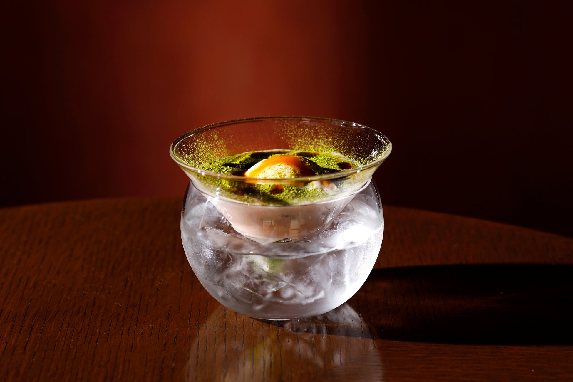 きなことバニラアイスクリームをベースに、黒蜜や抹茶をトッピング。モダンでありながらどこかノスタルジックな、和のデザートカクテルです。